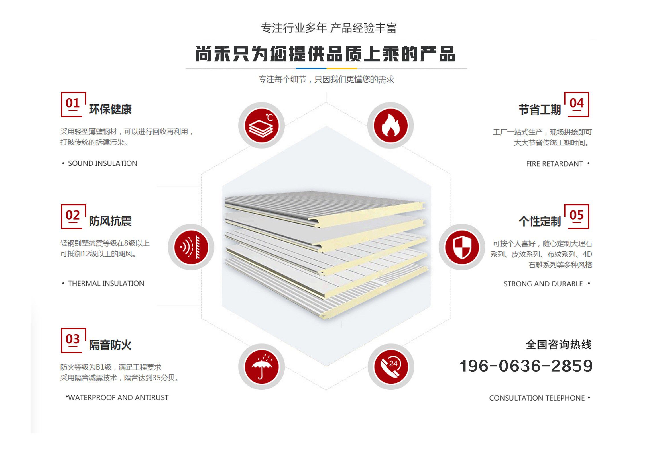 山東尚禾經(jīng)貿(mào)有限公司是集板材設(shè)計(jì)、研發(fā)、生產(chǎn)、施工、一體化的科技公司,并在同行業(yè)中率先通過(guò)了質(zhì)量、環(huán)境、安全管理體系認(rèn)證。公司2011年投入資金2000余萬(wàn)元引進(jìn)世界先進(jìn)的聚氨酯節(jié)能板連續(xù)生產(chǎn)線、意大利進(jìn)口發(fā)泡系統(tǒng),采用六組份在線自動(dòng)操作混合澆注技術(shù),在線一次性完成社會(huì)配料中心或工廠的配比混合工藝,并可以根據(jù)溫度在線自動(dòng)調(diào)整,從而生產(chǎn)處與眾不同的高強(qiáng)度、節(jié)能型、綠色環(huán)保的聚氨酯夾芯板。(其使用年限高于同行業(yè)其他品牌5-10年) 公司主要經(jīng)營(yíng)范圍包括聚氨酯夾芯板,PU夾芯板,冷庫(kù)板,潔凈板,聚氨酯冷庫(kù)板,冷庫(kù)保溫板的設(shè)計(jì)、生產(chǎn)、銷(xiāo)售、技術(shù)指導(dǎo)、安裝及一體、以及進(jìn)出口業(yè)務(wù),是中部六省最大的綠色節(jié)能建材生產(chǎn)基地。聚氨酯夾芯板年產(chǎn)200萬(wàn)平方米、PU夾芯板、冷庫(kù)保溫板500萬(wàn)平方米、鏈整產(chǎn)業(yè)綜合實(shí)力,開(kāi)創(chuàng)了六省至中西部創(chuàng)新型中小名企總部基地,并將著力推進(jìn)中國(guó)中西部地區(qū)集成房屋住宅產(chǎn)業(yè)化發(fā)展進(jìn)程。 科技創(chuàng)新、節(jié)能典范。千萬(wàn)間始終秉承“誠(chéng)信、合作”的企業(yè)文化精髓,長(zhǎng)期致力于鋼板材結(jié)構(gòu)節(jié)能建筑產(chǎn)業(yè),愿與社會(huì)各界攜手合作,共鑄綠色、環(huán)保美好未來(lái)。 產(chǎn)品具有良好的絕熱、阻燃、隔音、環(huán)保、耐久性能,可廣泛應(yīng)用于工業(yè)、商用建筑內(nèi)外墻、以及民用建筑外墻保溫、空調(diào)通風(fēng)系統(tǒng)、專用防火保溫門(mén)等領(lǐng)域。 我們始終秉承...
